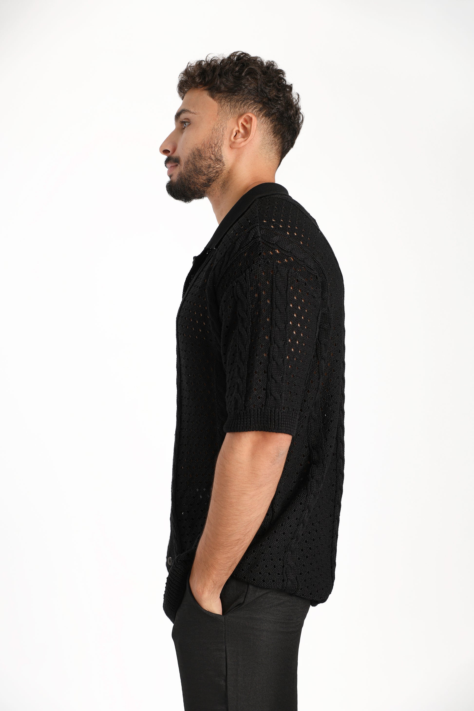 Designed for warm days and cool evenings, the Knitted Shirt offers breathable comfort with a relaxed fit. A versatile essential for effortless style—wherever the day takes you.